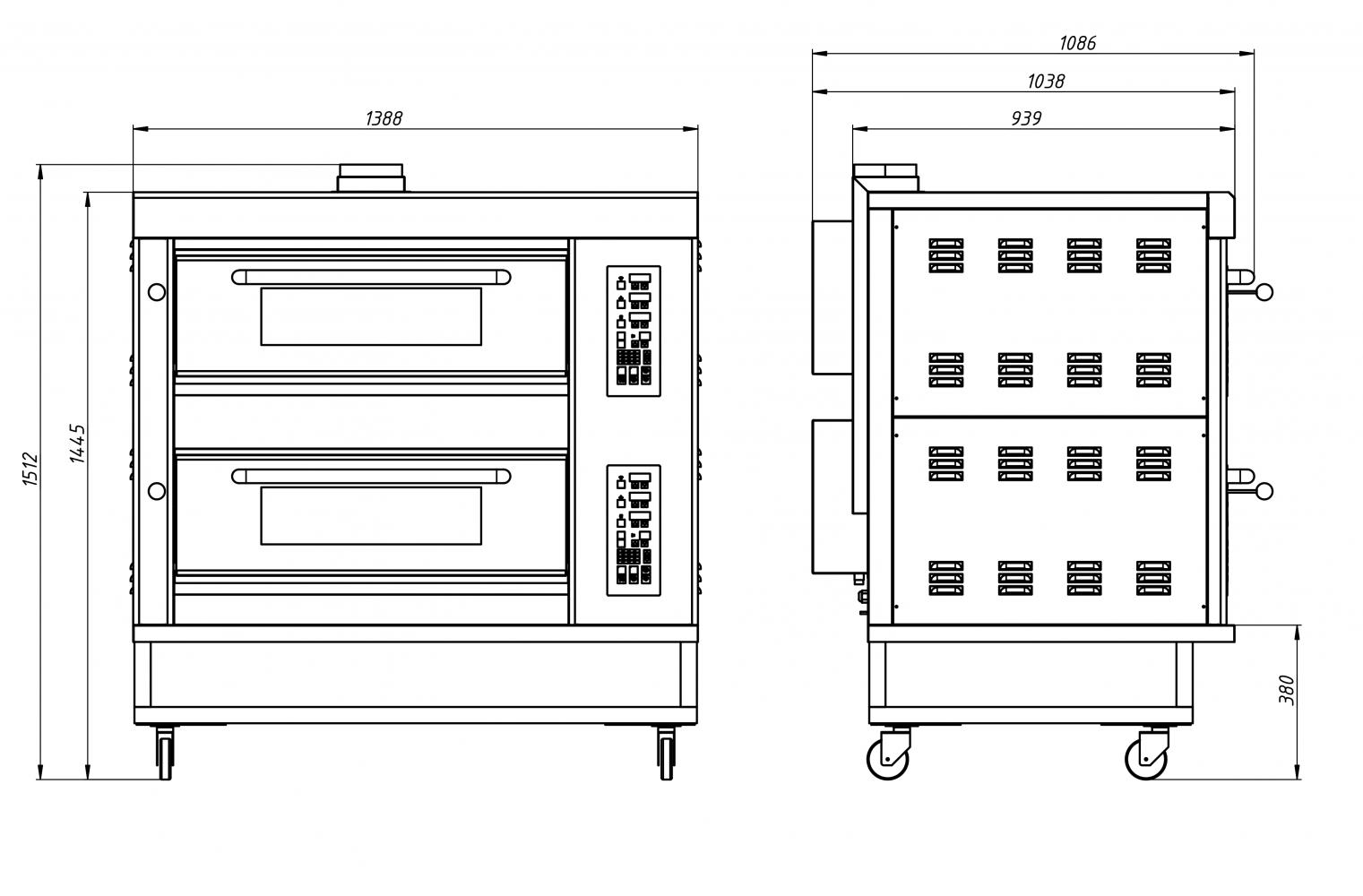 • Панель управления электронная, с раздельным управлением температуры свода и пода каждой секции печи