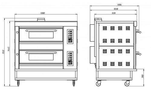 Шкаф пекарский подовый газовый Grill Master ШЖГ/2 (+400C) (4 противня, с пароувл.), арт. 13086 используется для выпечки хлебобулочных и кондитерских изделий на предприятиях общественного питания.