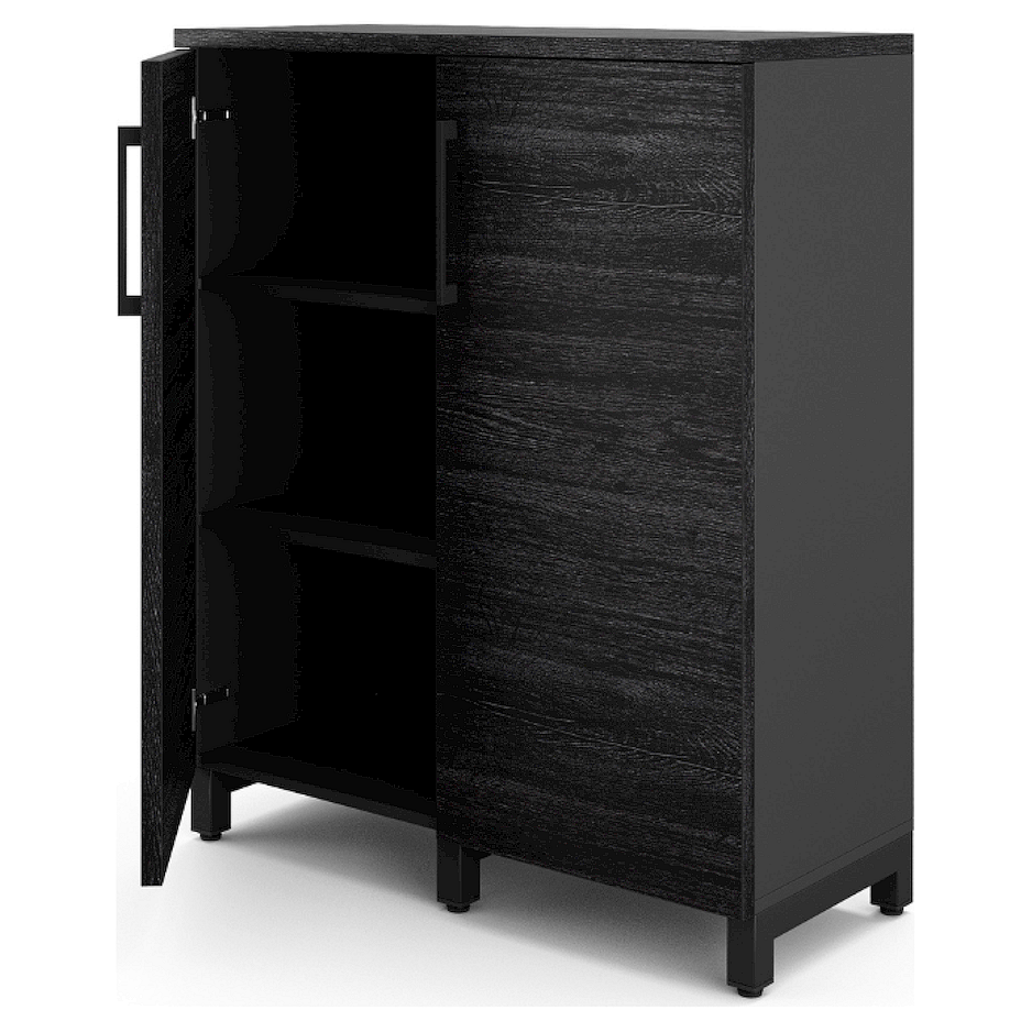 Шкаф распашной Kobor HR/3-90/40/M black/wood - компактное решение для эффективного хранения. Строгое сочетание цветов делает его идеальным решением для кабинета, переговорной или офисной прихожей.