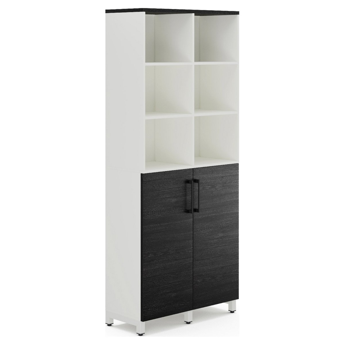 Шкаф распашной Kobor HR/3/3-90/40/M white/wood - компактное решение для эффективного хранения. Строгое сочетание цветов делает его идеальным решением для кабинета, переговорной или офисной прихожей.