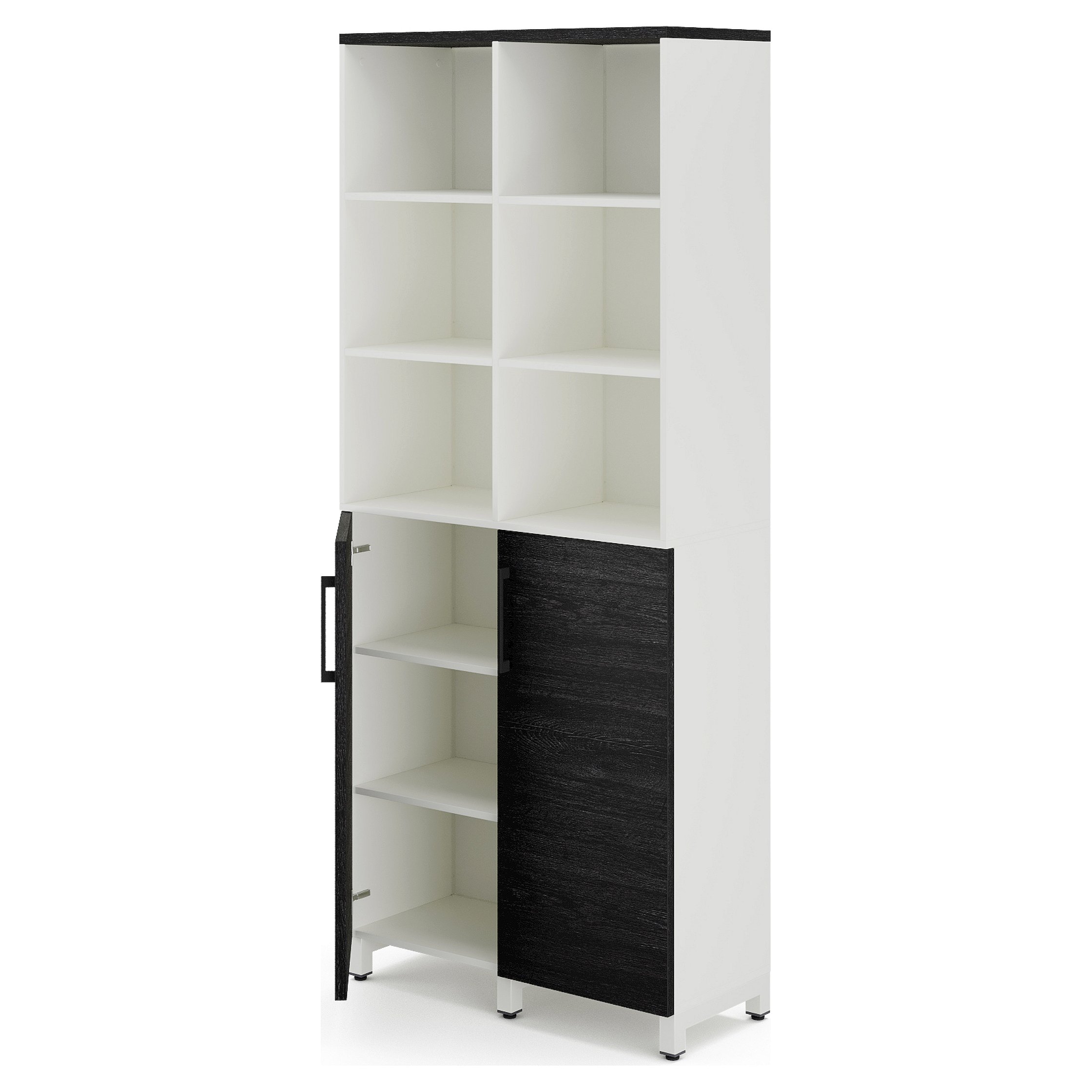 Шкаф распашной Kobor HR/3/3-90/60/M white/wood - компактное решение для эффективного хранения. Строгое сочетание цветов делает его идеальным решением для кабинета, переговорной или офисной прихожей.