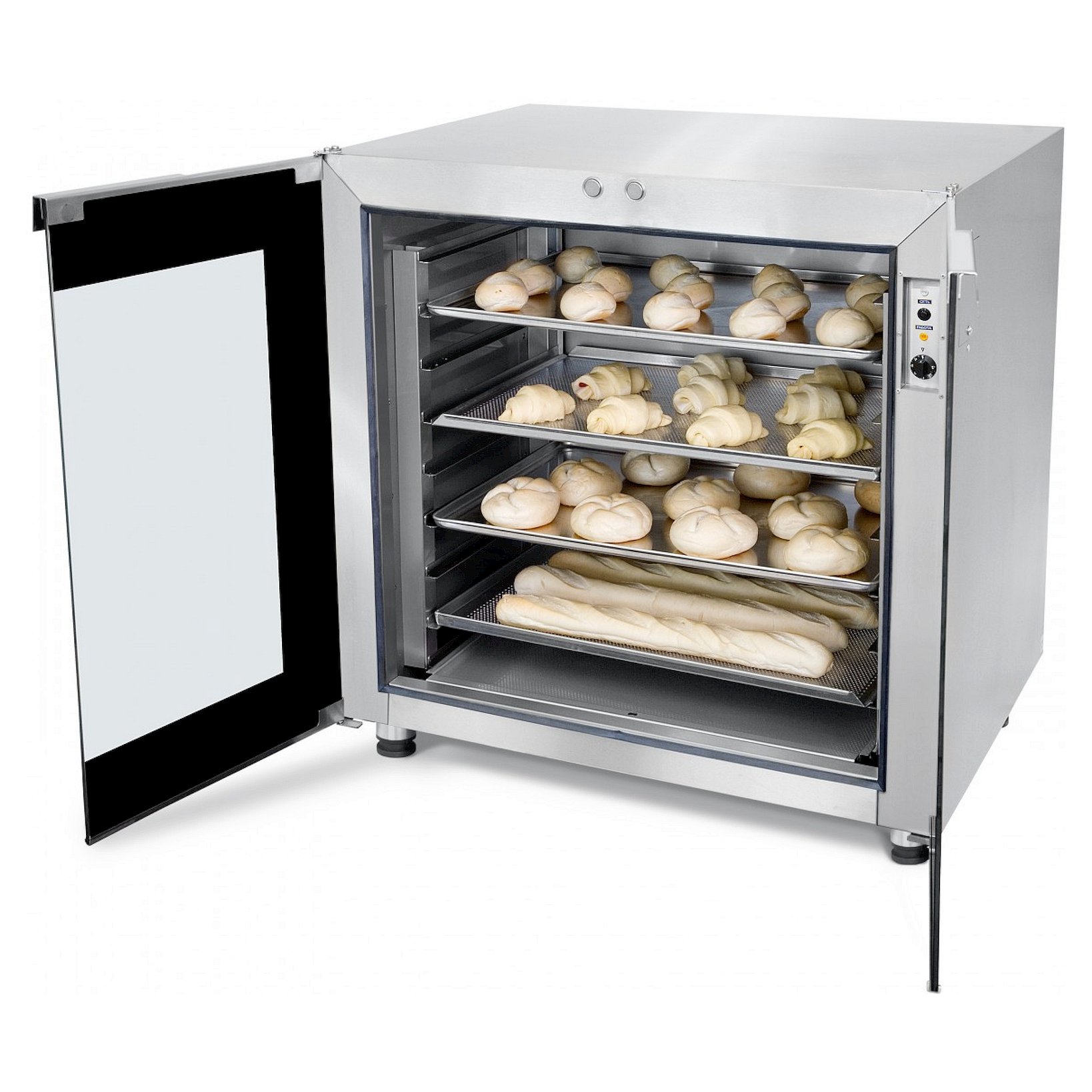 Такой расстоечный шкаф отличается простотой в обращении, система управления – электромеханическая. Дополнительно есть подсветка. Шкаф расстоечный имеет прочную конструкцию и качественные внутренние компоненты, что гарантирует весьма длительный срок безупречной работы. Использованный при изготовлении материал корпуса – нержавеющая сталь. А материал внутреннего объема – нержавеющая сталь. В данной модели материал дверей – стекло. Благодаря применению оборудования, как шкаф расстоечный, предприятия общепита могут добиваться высокого качества выпечки.