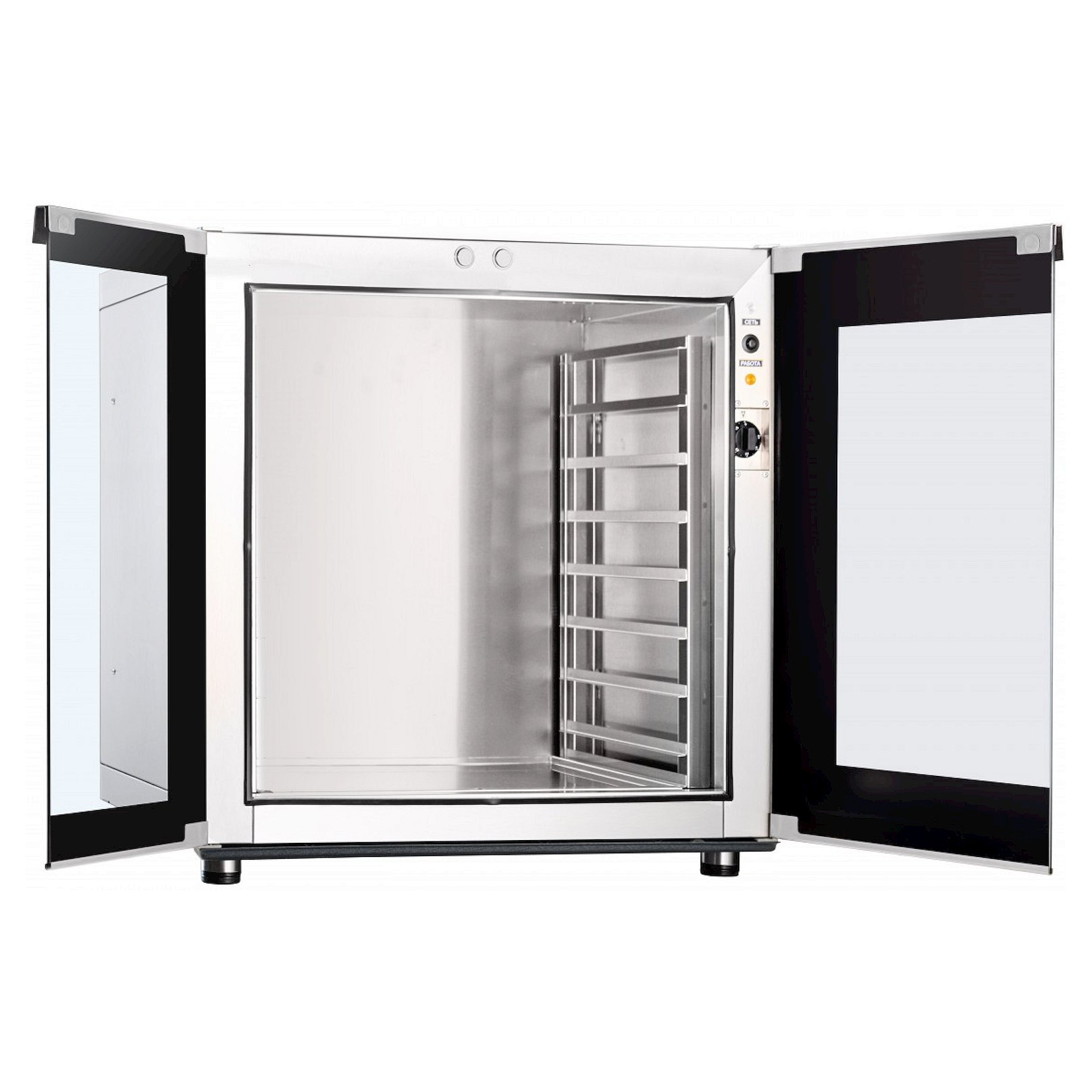 Дверца расстоечного шкафа ШРТ-8 оснащена прочным стеклом, устойчивым к высоким температурам. Даже при разогреве воздуха в камере до максимального значения стекло не нагревается выше +40 °С. Эта особенность гарантирует надежную защиту от получения ожогов. Все поверхности корпуса расстоечного шкафа изготовлены из нержавеющей стали, поэтому он защищен от возникновения коррозийных процессов.