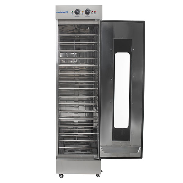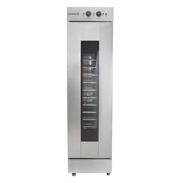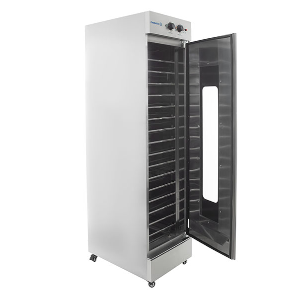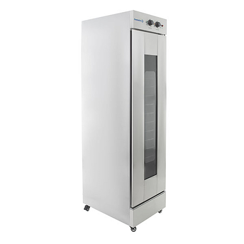 Изделие произведено из качественной нержавеющей стали. Стеклянная дверь обеспечивает надлежащий визуальный контроль над заготовками. Расположенный внутри шкафа вентилятор разгоняет горячий воздух по всему объему, создавая оптимальные условия по влажности и температуре.