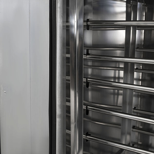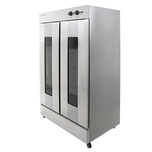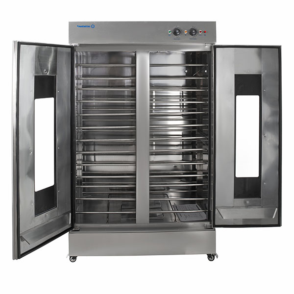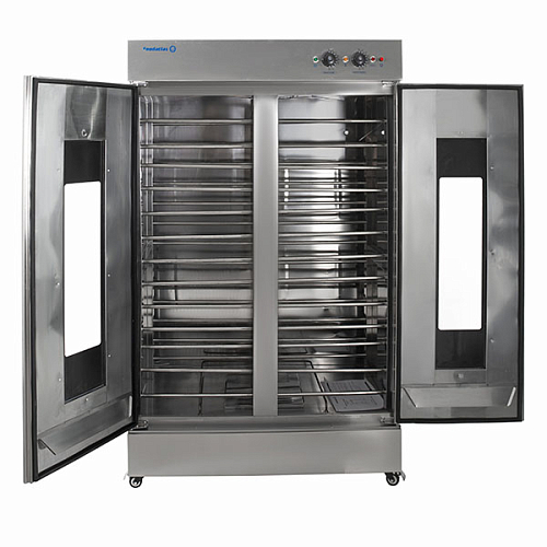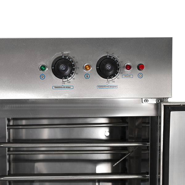 Изделие произведено из качественной нержавеющей стали. Стеклянная дверь обеспечивает надлежащий визуальный контроль над заготовками. Расположенный внутри шкафа вентилятор разгоняет горячий воздух по всему объему, создавая оптимальные условия по влажности и температуре.