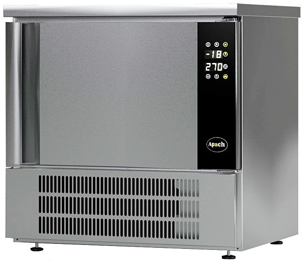 Шкаф шоковой заморозки APACH APR9/5 TLP предназначен для быстрой заморозки продуктов и приготовленных блюд на предприятиях общественного питания и торговли.Модель с электронной панелью управления оснащена встроенным холодильным агрегатом, самозакрывающимися дверями с магнитным уплотнителем и регулируемыми по высоте ножками. Корпус и внутренняя камера выполнены из нержавеющей стали AISI 304, днище, потолок и тыльная часть - из оцинкованного листа, изоляция - из пенополиуретана толщиной 60 мм.