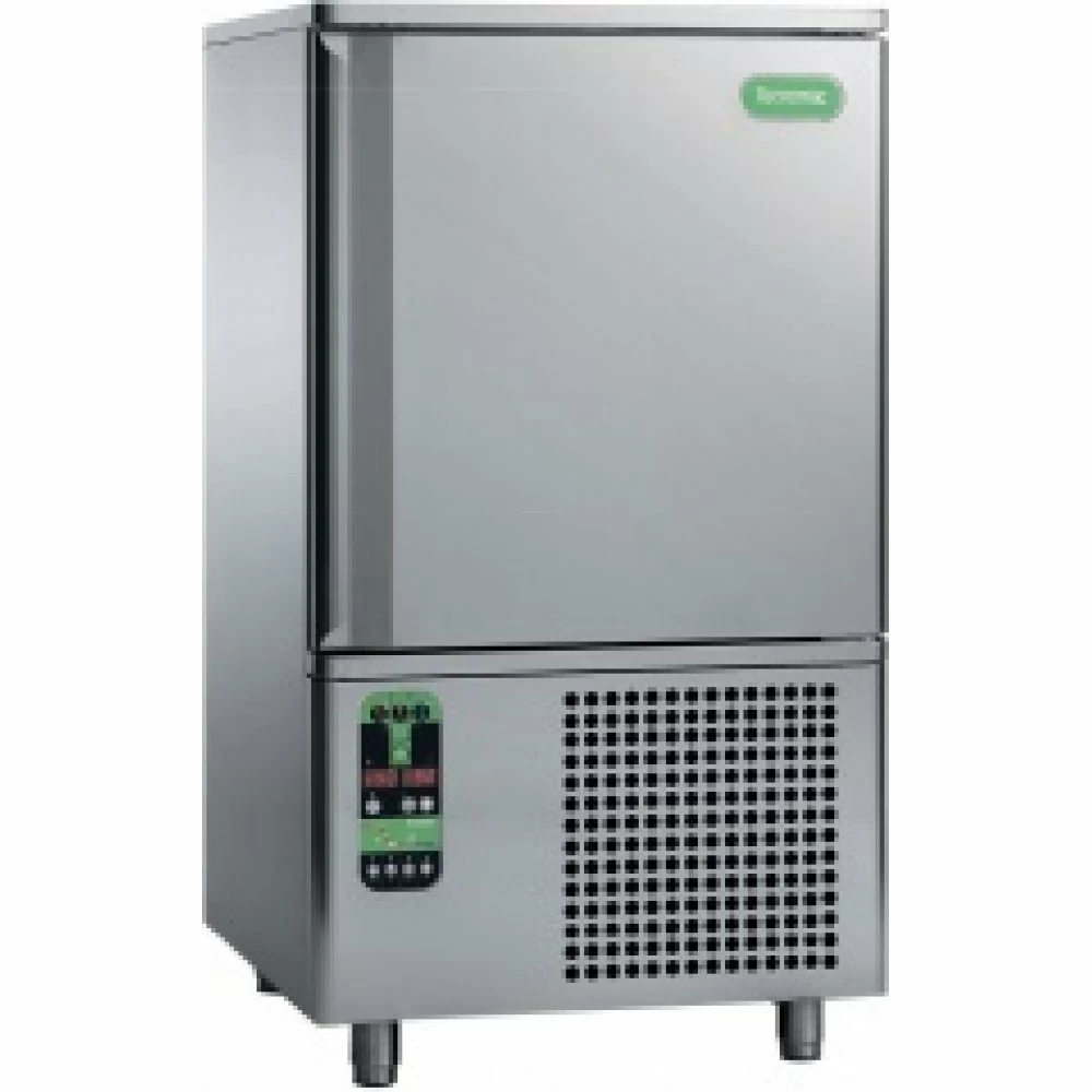 Шкаф сделан из нержавеющей стали. В шкафу установлена электронная панель управления с памятью на 99 программ. В структуре шкафа имеется зонд-игла, которая позволяет автоматически контролировать длинну цикла заморозки. Один цикл охлаждения 65 кг продукции с +95оС до +3оС, длится 90 мин., цикл охлаждения 50 кг продукции с +95оС до -18оС, длится 240 мин.