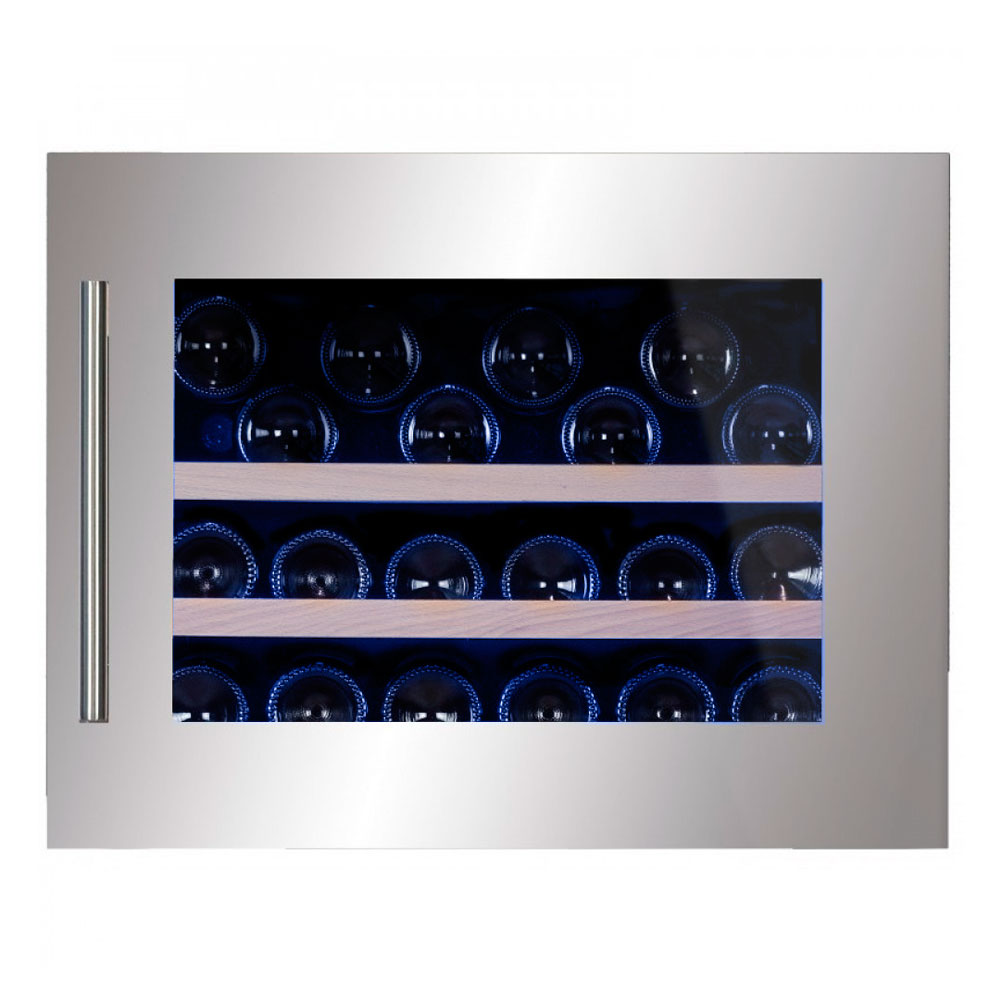 Шкаф винный Dunavox DAB-28.65SS предназначен для демонстрации, хранения и создания оптимальных условий для сохранения всех вкусовых свойств вина в бутылках на предприятиях общественного питания, торговли, в барах, ресторанах, специализированных магазинах, частных домах или квартирах. Модель оснащена сенсорной панелью управления и LED-подсветкой синего цвета. Корпус выполнен из окрашенного металла, дверь - из полированной стальной рамы и тонированного стекла с защитой от ультрафиолетовых лучей, полки - из нелакированного бука, накладная ручка двери - из нержавеющей стали.