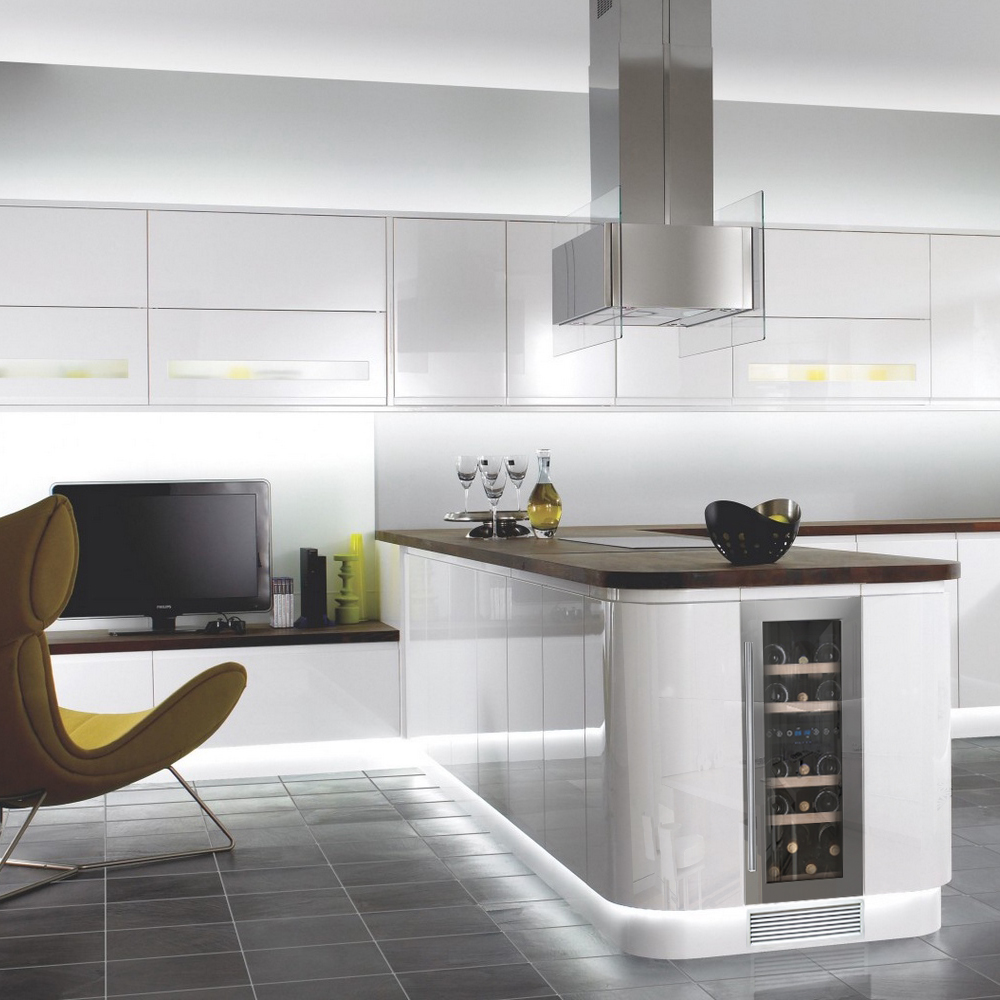 Модель оснащена сенсорной панелью управления, встроенной системой вентиляции и LED-подсветкой в каждой зоне. Корпус выполнен из окрашенного металла, дверь - из бесшовной нержавеющей стальной рамы и тонированного стекла с защитой от ультрафиолетовых лучей, полки - из массива бука, накладная ручка двери - из нержавеющей стали.