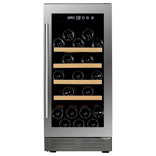 Шкаф винный Dunavox DAU-32.81SS предназначен для демонстрации, хранения и создания оптимальных условий для сохранения всех вкусовых свойств вина в бутылках на предприятиях общественного питания, торговли, в барах, ресторанах, специализированных магазинах, частных домах или квартирах. Модель оснащена сенсорной панелью управления и LED-подсветкой синего цвета. Корпус выполнен из окрашенного металла, дверь - из бесшовной стальной рамы и тонированного стекла с защитой от ультрафиолетовых лучей, полки - из нелакированного бука, накладная ручка двери - из нержавеющей стали.