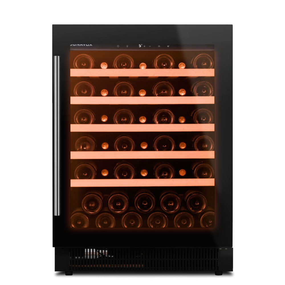 Универсальная технология применения особого температурного режима внутри камеры, позволяет сохранить все вкусовые и изысканные свойства вина. Интуитивная сенсорная панель управления придаёт современный вид, а трехцветная LED-подсветка в каждой зоне подчёркивает стиль. Демонстрационное освещение позволяет выбрать вино не открывая дверь. Тройное защитное стекло от УФ излучения, звуковой сигнализатор открытой двери с задержкой более 60 секунд.