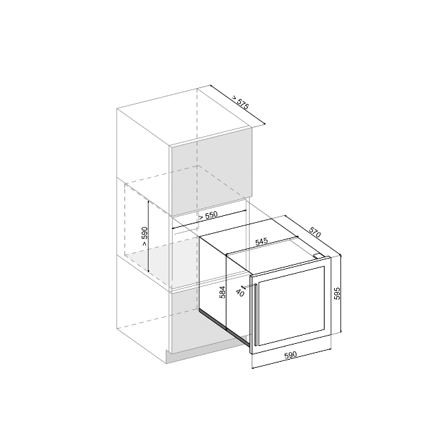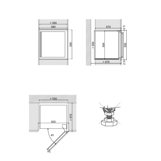 • Минимальный размер ниши для встраивания 589-593х555х545