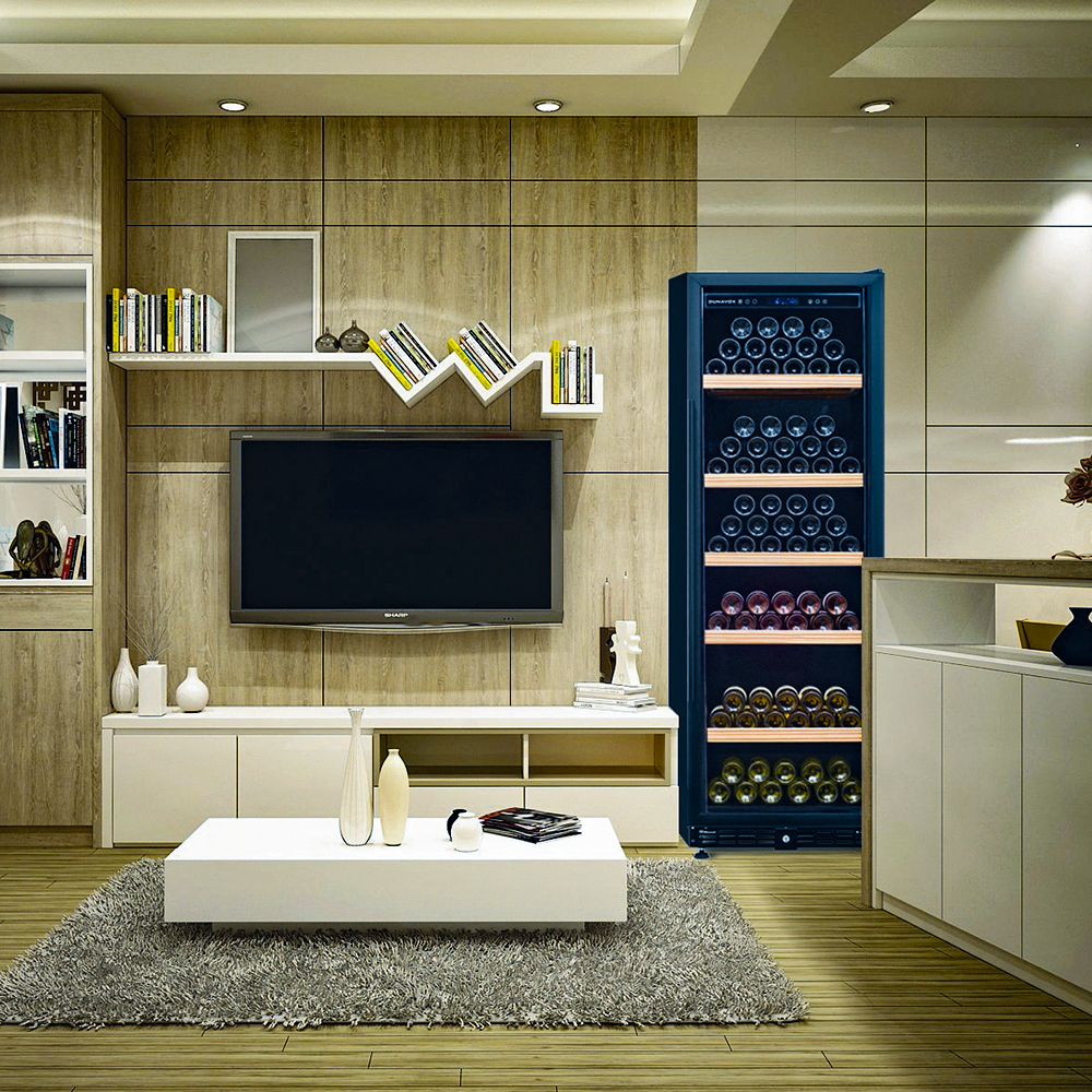 Шкаф винный Dunavox DX-198.450K предназначен для демонстрации, хранения и создания оптимальных условий для сохранения всех вкусовых свойств вина в бутылках на предприятиях общественного питания, торговли, в барах, ресторанах, специализированных магазинах, частных домах или квартирах. Модель оснащена сенсорной панелью управления и синей LED-подсветкой, дверным замком. Дверь выполнена из рамы черного цвета и тонированного стекла с защитой от ультрафиолетовых лучей, выдвижные полки - из нелакированного сапеле (древесина).