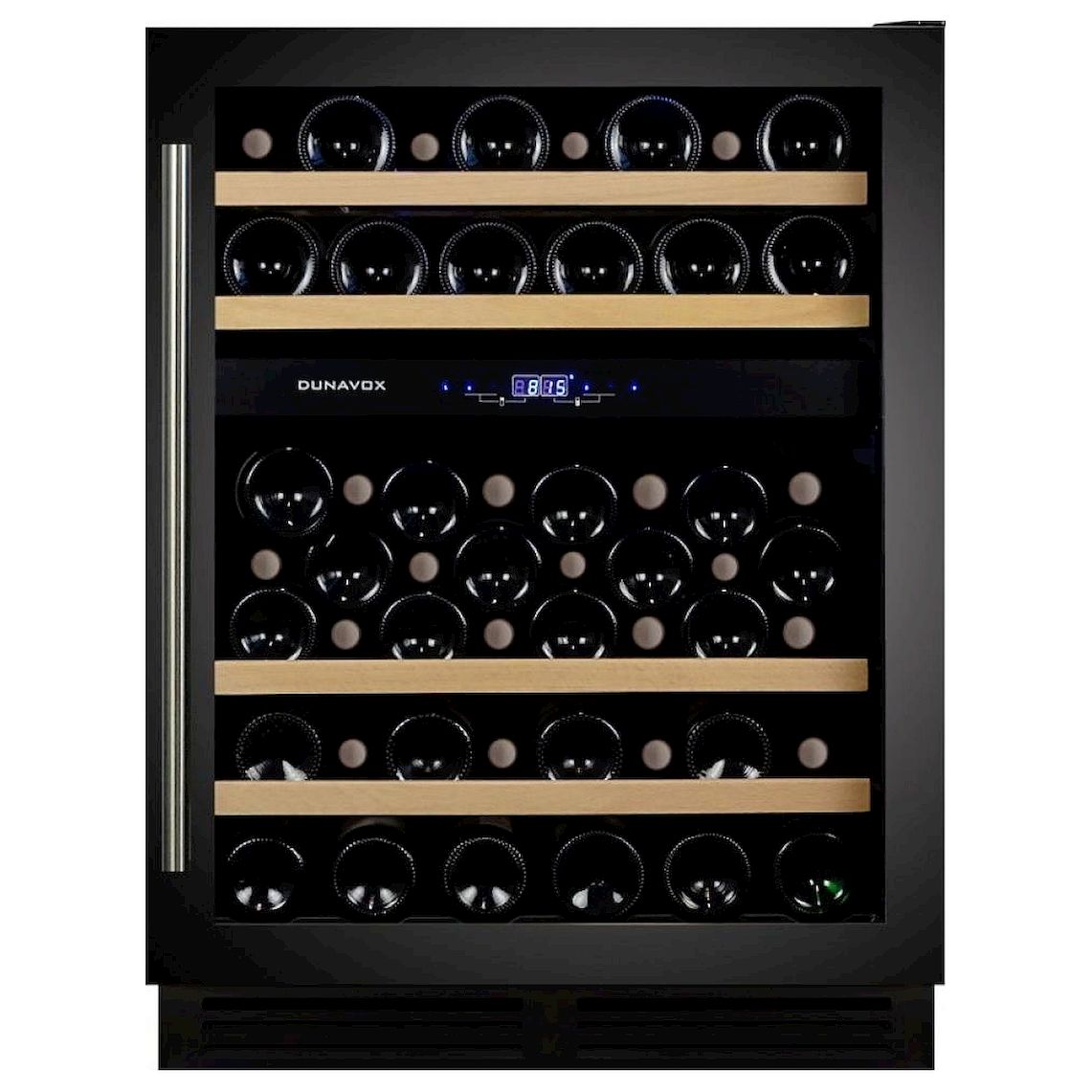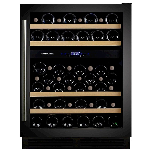 Шкаф винный Dunavox DX-53.130DBK/DP предназначен для демонстрации, хранения и создания оптимальных условий для сохранения всех вкусовых свойств вина в бутылках на предприятиях общественного питания, торговли, в барах, ресторанах, специализированных магазинах, частных домах или квартирах. Модель оснащена сенсорной панелью управления и LED-подсветкой синего цвета в каждой зоне. Корпус выполнен из окрашенного металла, дверь - из рамы черного цвета и тонированного стекла с защитой от ультрафиолетовых лучей, выдвижные полки - из нелакированного бука, накладная ручка двери - из нержавеющей стали.