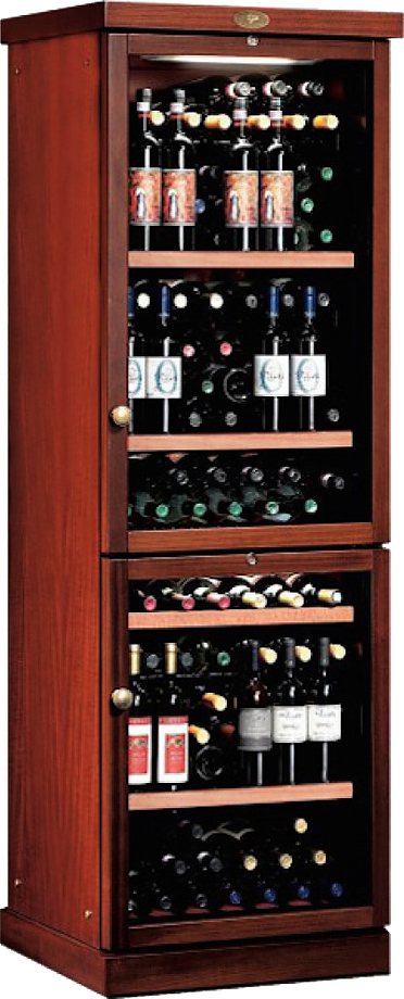 Модель оснащена электронным термостатом, цифровым дисплеем, подсветкой и замком. Корпус выполнен из крашенного металла, встроенного в деревянный короб Risto Line (древесина меньше по плотности и толщине, чем у моделей CEX), двери - из двойного стекла с защитой от ультрафиолетовых лучей, полки - из крашенного металла.