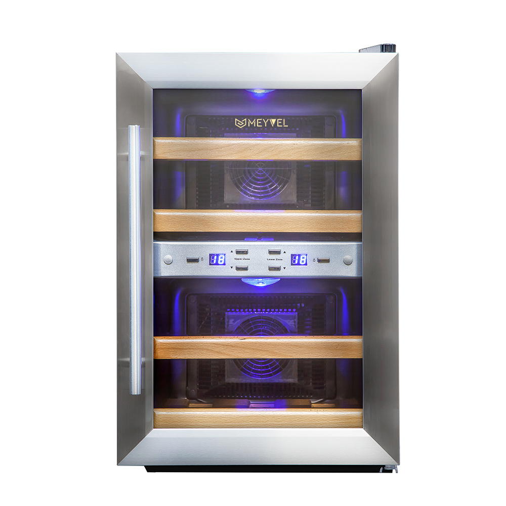 Шкаф винный Meyvel MV12-SF2 (easy) применяется для хранения и выдержки самых разнообразных сортов вин в барах, кафе, ресторанах, а также в частных домах. Сочетание современного вида и стиля, технология имитирующая винный погреб с применением особого температурного режима внутри камеры, позволяет сохранить все вкусовые и изысканные свойства вина.