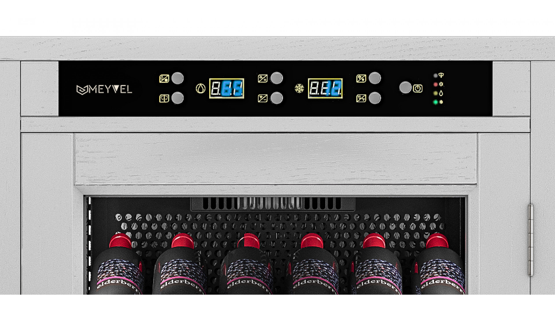 Шкаф винный Meyvel MV108-WW1-M предназначен для демонстрации, хранения и создания оптимальных условий для сохранения всех вкусовых свойств вина в бутылках на предприятиях общественного питания, торговли, в барах, ресторанах, специализированных магазинах, частных домах или квартирах. Модель оснащена сенсорной панелью управления, электронным термостатом и светодиодной подсветкой. Корпус выполнен из обшитой деревом стали, дверь - из деревянной рамы и двойного стекла с защитой от ультрафиолетовых лучей, полки - из массива бука, ручка двери - черного цвета.