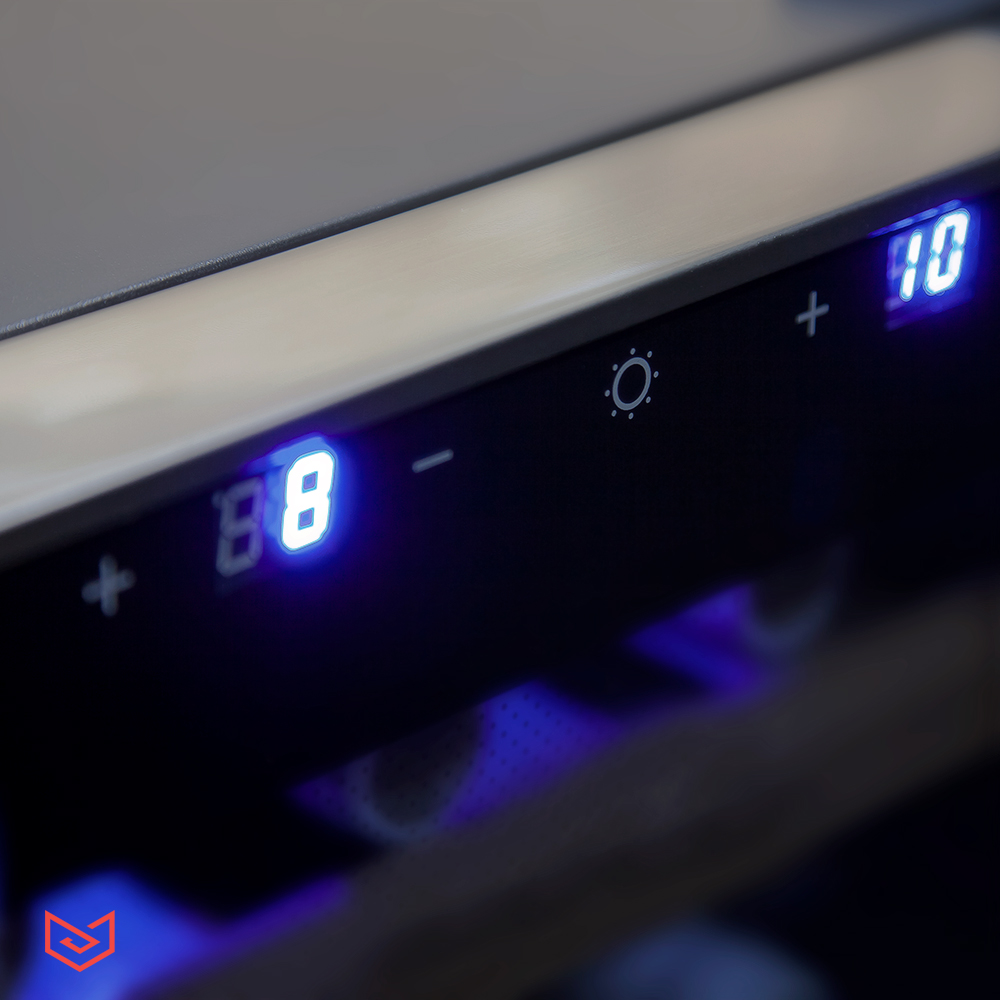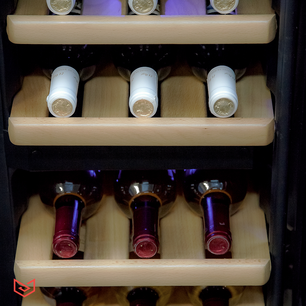 Электронная панель управления, светодиодное освещение в каждой зоне подчёркивает неповторимый стиль. Демонстрационная подсветка позволяет выбрать вино не открывая дверь, двойное защитное стекло от УФ излучения. Винный шкаф устанавливается как отдельн остоящий с соблюдением технических зазоров от 5 см с каждой стороны для естественного охлаждения, не рекомендуется устанавливать рядом с нагревательными приборами, батареями и прямыми солнечными лучами.