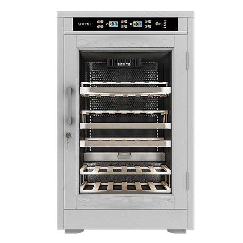 Шкаф винный Meyvel MV46-WW1-M предназначен для демонстрации, хранения и создания оптимальных условий для сохранения всех вкусовых свойств вина в бутылках на предприятиях общественного питания, торговли, в барах, ресторанах, специализированных магазинах, частных домах или квартирах. Модель оснащена сенсорной панелью управления, электронным термостатом и светодиодной подсветкой. Корпус выполнен из обшитой деревом стали, дверь - из деревянной рамы и двойного стекла с защитой от ультрафиолетовых лучей, полки - из массива бука.