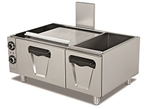 Электромеханическая панель управления, регулируемые ножки и шкафом с одной дверцей. Корпус и камера выполнены из нержавеющей стали, разрешенной для контакта с пищевыми продуктами. Можно использовать для установки под настольную 6-конфорочную плиту TER.127.