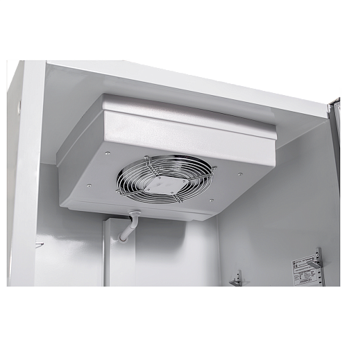 Оборудование имеет нижнее расположение холодильного агрегата, что позволяет с большим удобством выкладывать товары на нижнюю полку. Шкаф оснащен системой принудительного разгона воздуха.