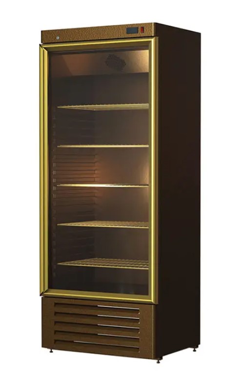 Шкаф-витрина Kayman К-ШВ-560 для напитков - характеризующийся широкой стеклянной дверцей, позволяющей увеличить обзорность продукции и тем самым повышающей факт так называемых импульсных покупок. Приятный дизайн впишется в интерьер любого кафе или кондитерской, т.к. этот холодильный шкаф выполнен в золотисто-шоколадном цвете. Шкаф оснащён встроенным замком, пятью полками-решетками, которые можно установить под углом, увеличивая узнаваемость продаваемого бренда. Золотистую дверь можно перевесить. Система охлаждения – динамическая, идеальна для продажи напитков, т.к. позволяет максимально быстро охлаждать большое количество поступающих товарных позиций.