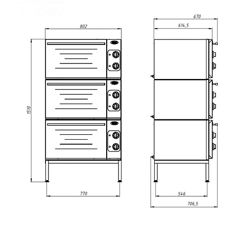 • Габаритные размеры, мм: 800х706х1505
