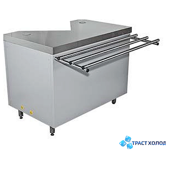 Кассовый прилавок предназначен для установки кассового аппарата и работы кассира. Предусмотрено угловое размещение кассира, которое создает дополнительные удобства в работе: кассир находится вполоборота к клиенту, у кассира появляется место для размещения не только кассового аппарата, но и компьютера и комфортной работы с ним (пространство для рук).