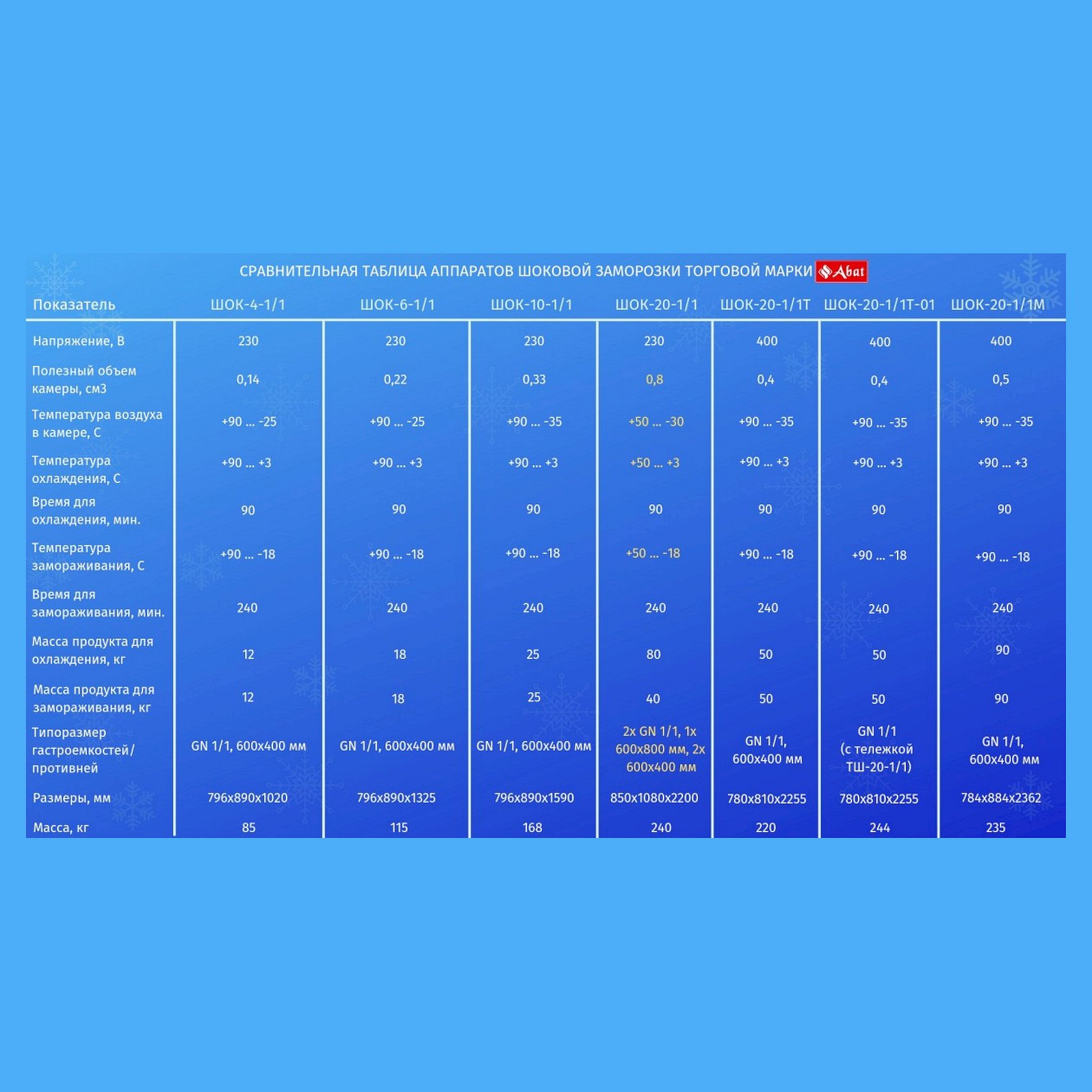 Аппарат шоковой заморозки Abat ШОК-6-1/1 предназначен для быстрого охлаждения, замораживания и дальнейшего хранения различных пищевых продуктов на предприятиях общественного питания и торговли.