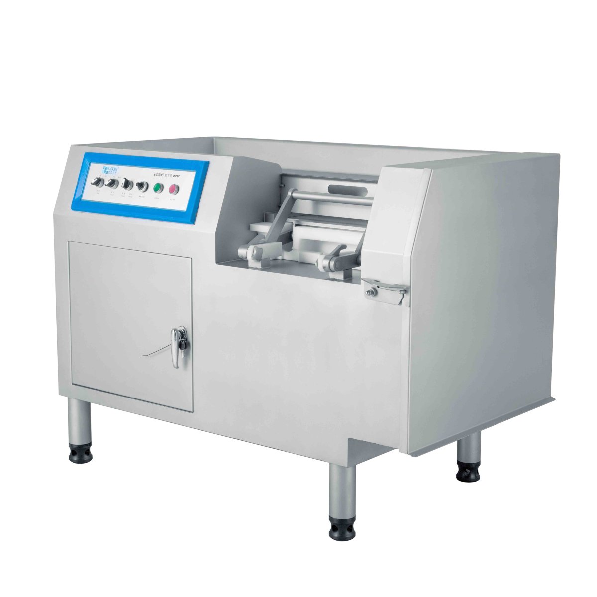 Шпигорезка Hualian Machinery QD-4095 – это профессиональное оборудование для нарезки мяса, птицы, шпика, сыра и овощей в мясоперерабатывающей и пищевой промышленности. Машина предназначена для нарезки сырья при температуре -4℃ кубиками, ломтиками или соломкой. Величина кусочков регулируется. Длина нарезки регулируется в диапазоне от 4 до 26 мм. Размер кубика (ДхШ) регулируется путем смены решетки ножевого блока. Диапазон размеров – от 4х4 мм до 24х24 мм.
