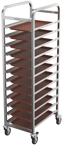 Шпилька Atesy КШ-Л-1.12-350.600-02 предназначена для транспортировки и хранения гастроемкостей в пекарнях, кафе, фаст-фудах, а также в ресторанах на предприятиях общественного питания и торговли. Модель оснащена 4 поворотными колесами, 2 из которых снабжены тормозными устройствами. Сварная конструкция полностью выполнена из нержавеющей стали AISI 304.