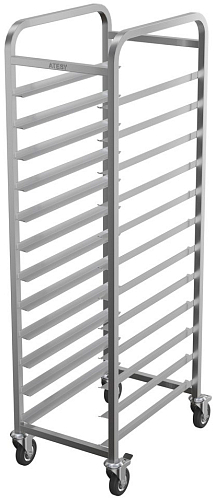 Шпилька Atesy КШ-Л-1.18-2.1-02 предназначена для сбора, хранения и перемещения гастроемкостей в пекарнях, кафе, фаст-фудах, а также в ресторанах на предприятиях общественного питания и торговли. Модель оснащена 4 поворотными колесами, 2 из которых снабжены тормозными устройствами. Сварная конструкция полностью выполнена из нержавеющей стали AISI 304.