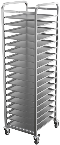 Шпилька Atesy КШ-Л-1.18-470.580-02 предназначена для сбора, хранения и перемещения гастроемкостей в пекарнях, кафе, фаст-фудах, а также в ресторанах на предприятиях общественного питания и торговли. Модель оснащена 4 поворотными колесами, 2 из которых снабжены тормозными устройствами. Сварная конструкция полностью выполнена из нержавеющей стали AISI 304.