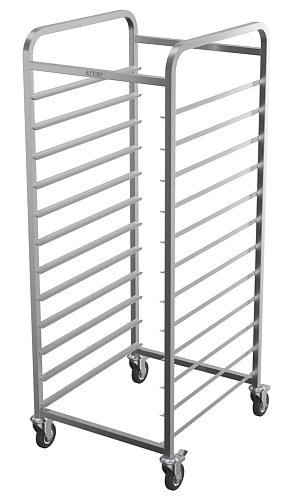 Шпилька Atesy КШ-С-1.12-2.1-02 предназначена для сбора, хранения и перемещения гастроемкостей в пекарнях, кафе, фаст-фудах, а также в ресторанах на предприятиях общественного питания и торговли. Модель оснащена 4 поворотными колесами, 2 из которых снабжены тормозными устройствами. Разборная конструкция полностью выполнена из нержавеющей стали AISI 304.