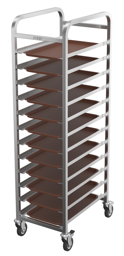 Шпилька Atesy КШ-С-1.12-350.600-02 предназначен для транспортировки и хранения гастроемкостей в пекарнях, кафе, фаст-фудах, а также в ресторанах на предприятиях общественного питания и торговли. Модель оснащена 4 поворотными колесами, 2 из которых снабжены тормозными устройствами. Разборная конструкция полностью выполнена из нержавеющей стали AISI 304.