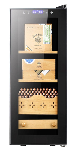 В комплект поставки входят 3 выдвижные полки и ящик для сигар, ящик с резервуаром для воды, инструкция по эксплуатации, гарантийный талон и заводская упаковка.