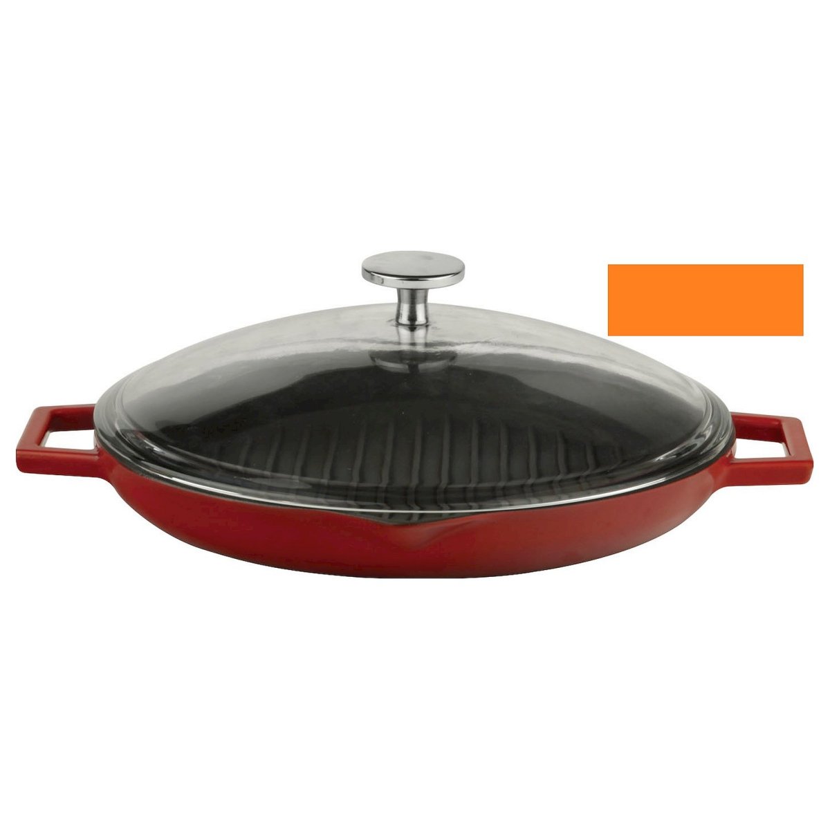 Сковорода-гриль d=30 см. чугун, оранжевая, ручка металл с крышк.LAVA