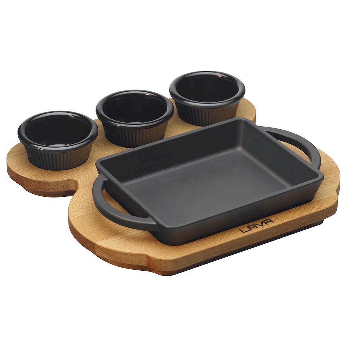 Сковорода-мини порционная 12*15 см. на деревянной подставке, чугун, черная LAVA /1/