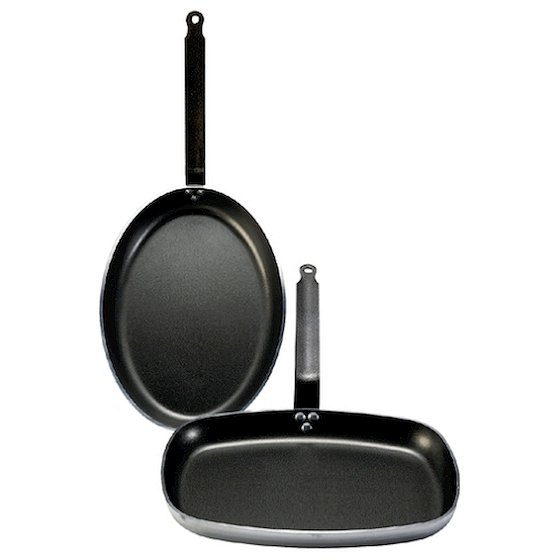 Овальные или прямоугольные сковороды имеют идеальную форму для приготовления рыбы целиком.