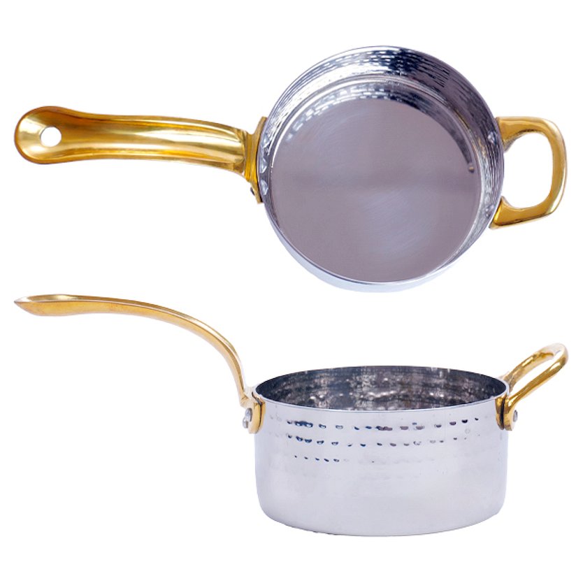 Сковорода порционная d=10,5 см. h=5 см. нерж. глубокая с 2 ручками латунь MGsteel /1/36/
