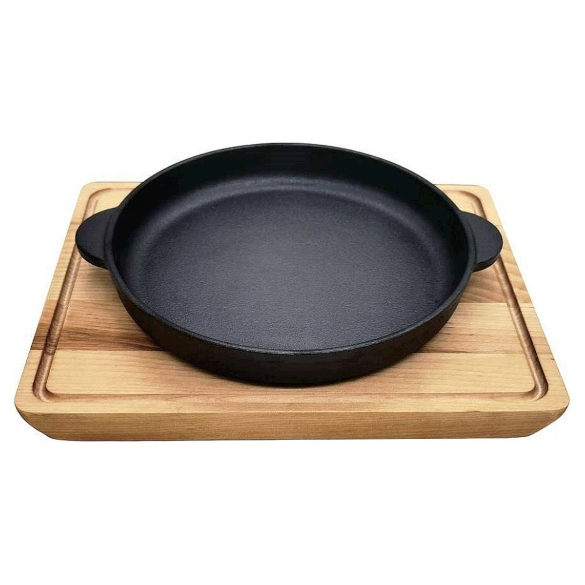 Сковорода порционная d=18 см. h=3 см. чугун. с 2 ручками на деревянной подставке /1/6/