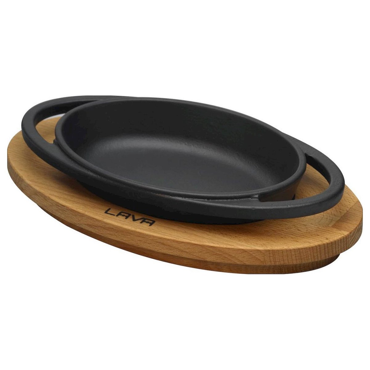 Сковорода порц. 15*2,5*10 см. чугун. овальная на дерев. подставке LAVA /1/