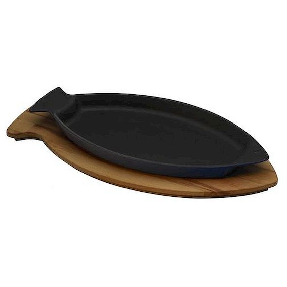 Сковорода порц. 24*15 см. чугун. овальная "рыбка" на дерев. подставке "ECO" LAVA
