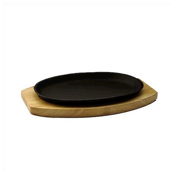 Сковорода порц. 24*17 см. чугун. овальная на дерев. подставке (S-D2) /1/5/