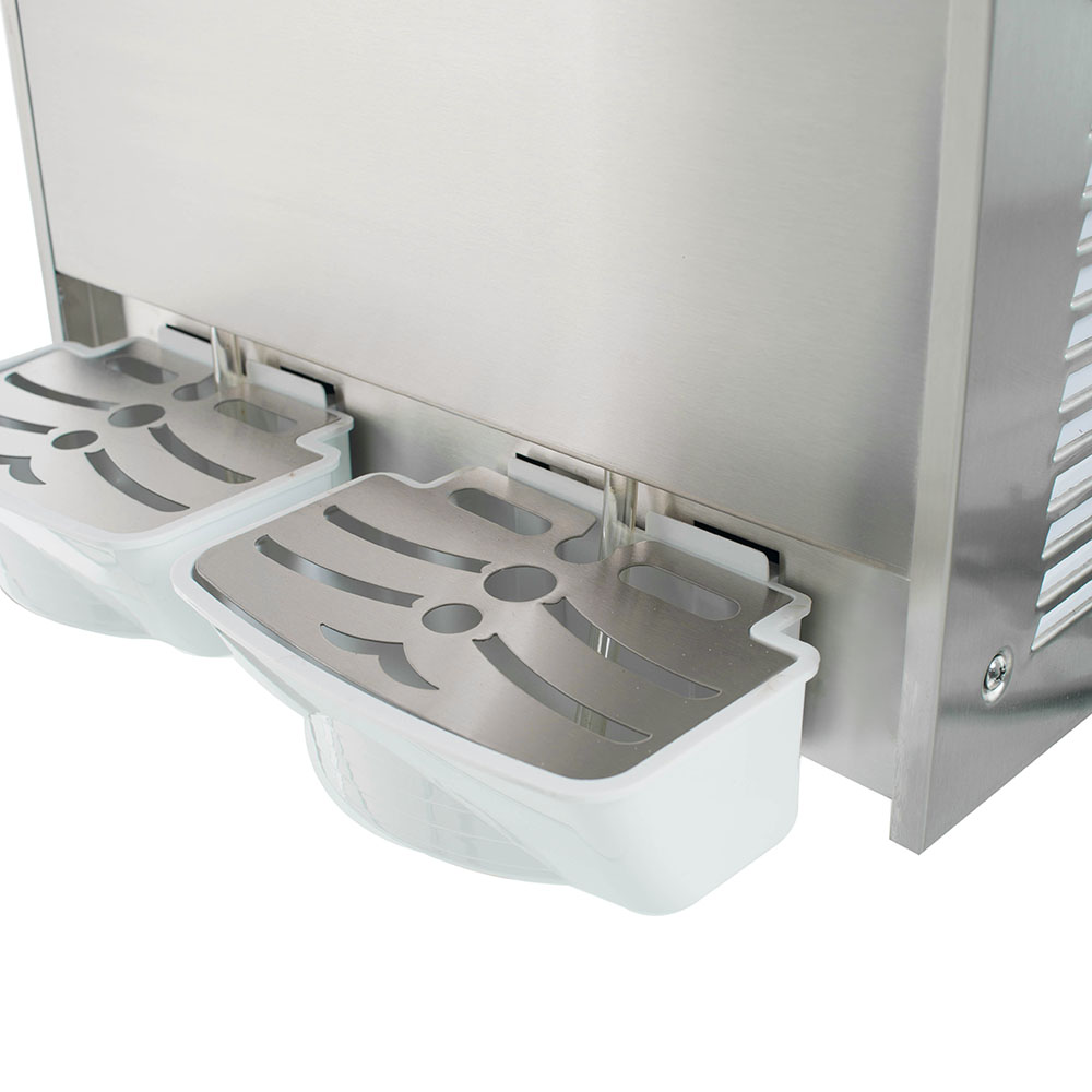 • Слаш-машина имеет 2 прозрачных емкости по 15 литров каждая. Этот объем оптимален для продаж и позволяет не беспокоиться о частом наполнении машины смесью в течение дня.