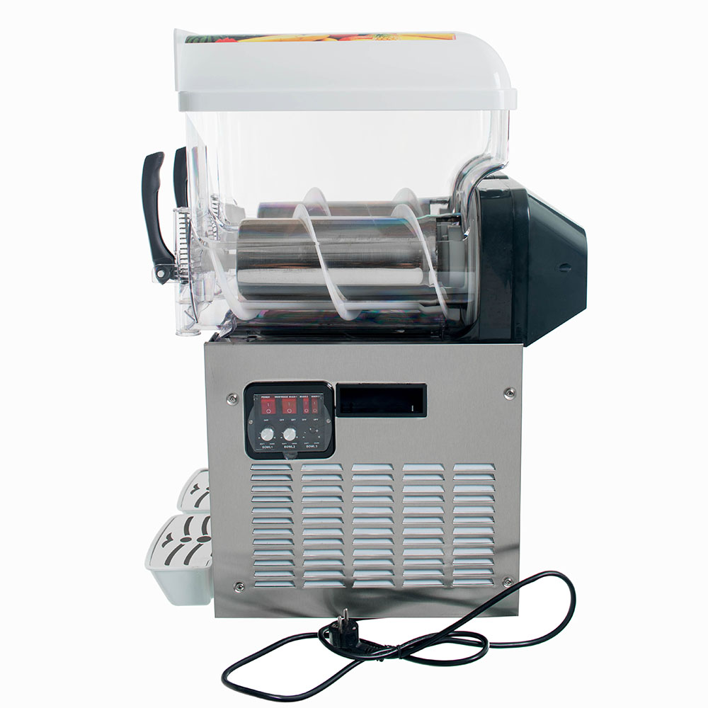 Слаш машина Foodatlas KRJ-15L2 используется на предприятиях общественного питания и торговли для приготовления граниты на основе сиропов, соков или пюре из фруктов и ягод. Все детали, контактирующие с продуктами, выполнены из нержавеющей стали.