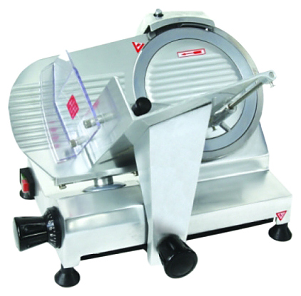 Слайсер Starfood HBS 195 предназначен для нарезки тонкими одинаковыми ломтиками приготовленного мяса, колбасных изделий и сыра на предприятиях общественного питания и торговли. Нарезанные продукты подходят для приготовления сандвичей, гамбургеров, салатов и т.д. В корпусе устройства, оборудованном надежными ножками, расположен двигатель, благодаря которому осуществляется вращение ножа. Верхняя часть слайсера состоит из наклонной поверхности, округлого ножа, подвижной каретки и ручки-фиксатора.