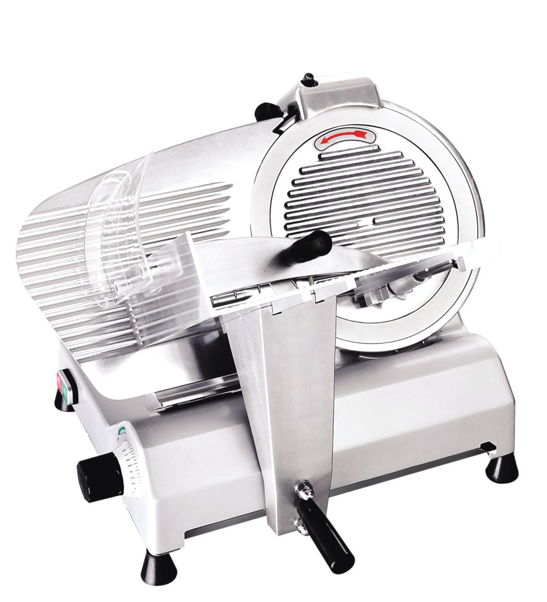 Слайсер GASTRORAG HBS-B250B-1 используется в сфере общественного питания и торговли для нарезки мясных деликатесов (колбас, ветчин) и твердых сортов сыра.
