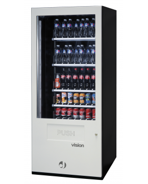 В отличие от снековых автоматов со спиралями, в аппарате Vision подача продуктов производится с помощью транспортерной ленты, что позволяет увеличить вместимость аппарата на 30%, а также дает возможность размещать на полках товары любой формы и размера.