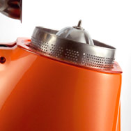 Внутренний фильтр гарантирует однородную консистенцию апельсинового сока. Фильтр и внутренние части выполнены из нержавеющей стали, контейнер для сока из небьющегося материала.